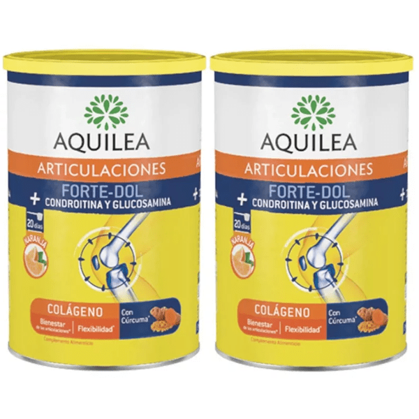 https://www.atida.com/es-es/aquilea-articulaciones-forte-dol-2x280-gr302300353570Aquilea Articulaciones Forte-Dol 2x280 gr<p><strong>Complemento alimenticio</strong> que aporta flexibilidad y bienestar a las articulaciones.</p><p>Se compone de:</p><p>- <strong>Colágeno</strong> que contribuye al mantenimiento de los huesos y los músculos en condiciones normales.</p><p>- <strong>Glucosamina</strong>: Está involucrada en la formación de los tendones, ligamentos y del cartílago.</p><p>- <strong>Condroitina</strong>: es una sustancia que se encuentra en los cartílagos alrededor de las articulaciones.</p><p>- <strong>Cúrcuma</strong>: ayuda a mantener la flexibilidad y el bienestar de las articulaciones, así como mantener una buena movilidad.</p><p>- <strong>Ácido Hialurónico</strong>: se encuentra de manera natural en las articulaciones.</p><p>- <strong>Vitamina C</strong>: contribuye a la normal formación de colágeno para el funcionamiento normal del cartílago, los huesos y la piel.</p><p>Envase para 20 días.</p><p><strong>Sabor naranja</strong>.</p><p><span style="font-weight: bold;">¡DUPLO, AL MEJOR PRECIO!</span></p>https://assets.atida.com/transform/bf5495d1-5186-48a1-8811-235bcbf444d0/Aquilea-Articulaciones-Forte-Dol-2x280-gr?io=transform:extend,width:250,height:25048.99instock48.9944.53636263636400Aquileahttps://www.atida.com/media/catalog/product/6/7/5/b/675b3f9d82d5424ca8cf62bdd0f1d58fbb2c621e_Product_Tile_Thumbnail_Aquilea_Articulaciones_Forte_Dol_2x280_gr.png/Vitaminas y Suplementos/Suplementos/Huesos, Articulaciones y Músculos/Vitaminas y Suplementos/Vitaminas y Suplementos/Minerales/Vitaminas y Suplementos/Suplementos/Vitaminas y Suplementos/Vitaminas (A-K)/Miniprecios/Packs Ahorro/Packs Ahorro/Packs Vitaminas y Suplementos/Dias Sin IVA 10%/Exclusiones Cupones ATIDA ES 3.0/Exclusiones Cupones ATIDA ES 2.02023-08-17T05:59:30+0000