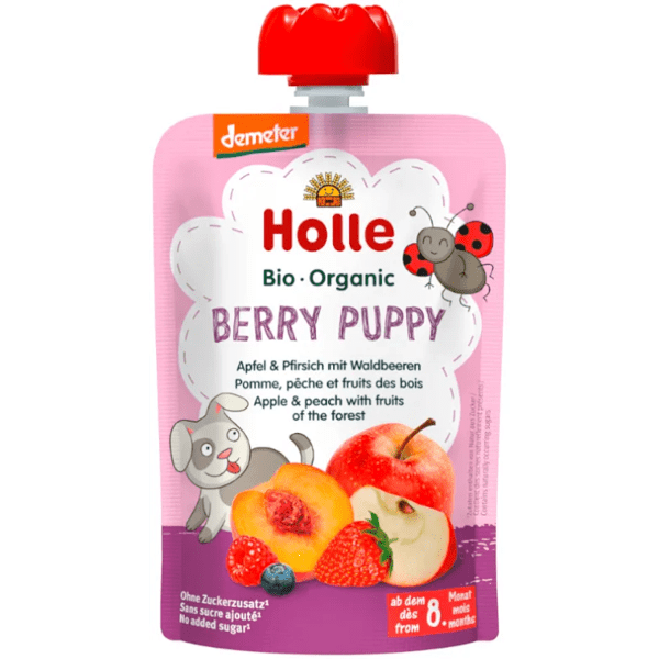 Holle Bio Smoothie BERRY PUPPY Manzana, Melocotón y Frutas del Bosque +8m 100 gr