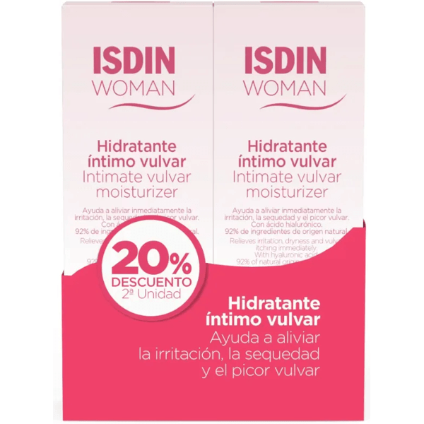 https://www.atida.com/es-es/isdin-woman-hidratante-vulvar-2x30-ml-2da-ud-20 466654577023 Isdin Woman Hidratante Vulvar 2x30 ml <p><span style="font-weight: 700;">Isdin Woman Hidratante Vulvar 2x30 ml</span></p><p>Crema hidratante vulvar con una fórmula que ayuda a aliviar el picor e hidrata la zona.<br></p><p>Protege frente a los problemas habituales de sequedad e irritación.