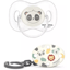 El chupete ha sido diseñado para adaptarse y respetar el desarrollo bucodental de tu bebé desde el primer día gracias a su tetina fisiológica. Su forma plana se adapta de forma perfecta al paladar.