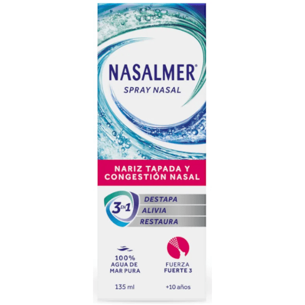 Este producto está diseñado para ofrecer una <span style="font-weight: bold;">triple acción:</span> </p><p><span style="font-weight: bold;">1. destapa las fosas nasales</span></p><p><span style="font-weight: bold;">2. alivia la presión </span></p><p><span style="font-weight: bold;">3. restaura la función respiratoria normal. </span></p><p><span style="font-weight: bold;">La presión adicional</span> que proporciona Nasalmer Fuerte<span style="font-weight: bold;"> facilita la limpieza de las fosas nasales,</span> permitiendo que el usuario respire con mayor comodidad, incluso en situaciones de congestión intensa.</p><p>Nasalmer Fuerte es una<span style="font-weight: bold;"> opción natural y segura que no contiene aditivos químicos</span>, lo que lo convierte en una elección ideal para quienes buscan una solución eficaz y respetuosa con el organismo. </p><p>También es útil como <span style="font-weight: bold;">apoyo tras intervenciones quirúrgicas nasales</span>, facilitando una recuperación más rápida y cómoda.</p>https://assets.atida.com/transform/54d36665-d889-4bf9-905f-0b9fe94af6e6/Nasalmer-Fuerte-3-Descongestion-Nasal-y-Limpieza-Profunda-10-Anos-Spray-135-ml?io=transform:extend,width:250,height:25010.99instock10.999.082643628099200Nasalmerhttps://www.atida.com/media/catalog/product/f/8/7/d/f87d595f24383d04c7a2e615a6d15c2f1bf99c65_Nasalmer_Fuerte_3_Descongestion_Nasal_y_Limpieza_Profunda_10_Anos_Spray_135_ml.png/Bebé y Mamá/Cuidado/Higiene Nasal/Bebé y Mamá/Bebé y Mamá/Cuidado/Salud e Higiene/Nariz y Orejas/Limpieza/Salud e Higiene/Salud e Higiene/Nariz y Orejas/Singles' Day ¡-11% Extra!2025-11-08T01:33:58+0000