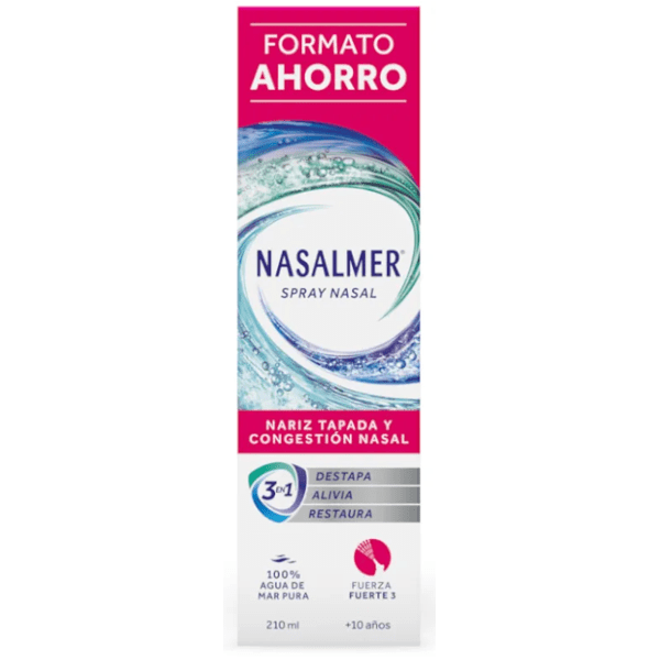 https://www.atida.com/es-es/nasalmer-fuerte-3-descongestion-nasal-y-limpieza-profunda-10a-os-spray-210-ml521033020519Nasalmer Fuerte 3 Descongestión Nasal y Limpieza Profunda +10Años Spray 210 ml<p><span style="font-weight: bold;">Nasalmer Fuerte 3 Descongestión Nasal y Limpieza Profunda +10Años Spray 210 ml</span></p><p><span style="font-weight: bold;">Nasalmer Fuerte</span> es un <span style="font-weight: bold;">spray nasal isotónico</span>, especialmente formulado para<span style="font-weight: bold;"> niños mayores de 10 años y adultos</span> que requieren <span style="font-weight: bold;">una limpieza nasal eficaz.</span></p><p>Su composición única, que incluye <span style="font-weight: bold;">100% agua de mar pura y una concentración isotónica de sal</span> (9g/L de NaCl), permite una aplicación más profunda y efectiva, lo que proporciona un <span style="font-weight: bold;">alivio significativo de la congestión nasal y la mucosidad asociada a resfriados, gripe o condiciones crónicas de la nariz.</span></p><p>Este producto está diseñado para ofrecer una <span style="font-weight: bold;">triple acción:</span></p><p><span style="font-weight: bold;">1. destapa las fosas nasales</span></p><p><span style="font-weight: bold;">2. alivia la presión </span></p><p><span style="font-weight: bold;">3. restaura la función respiratoria normal.</span></p><p><span style="font-weight: bold;">La presión adicional</span> que proporciona Nasalmer Fuerte<span style="font-weight: bold;"> facilita la limpieza de las fosas nasales,</span> permitiendo que el usuario respire con mayor comodidad, incluso en situaciones de congestión intensa.</p><p>Nasalmer Fuerte es una<span style="font-weight: bold;"> opción natural y segura que no contiene aditivos químicos</span>, lo que lo convierte en una elección ideal para quienes buscan una solución eficaz y respetuosa con el organismo.</p><p>También es útil como <span style="font-weight: bold;">apoyo tras intervenciones quirúrgicas nasales</span>, facilitando una recuperación más rápida y cómoda.</p>https://assets.atida.com/transform/b56d701d-b0d7-4827-b160-fd964ce4119e/Nasalmer-Fuerte-3-Descongestion-Nasal-y-Limpieza-profunda-10Anos-Spray-210-ml?io=transform:extend,width:250,height:25011.99outofstock11.999.909089909090900Nasalmerhttps://www.atida.com/media/catalog/product/a/2/b/c/a2bceb64553cc92c4f336170fbfee1d90529004b_Nasalmer_Fuerte_3_Descongestion_Nasal_y_Limpieza_profunda_10Anos_Spray_210_ml.png/Bebé y Mamá/Cuidado/Higiene Nasal/Bebé y Mamá/Bebé y Mamá/Cuidado/Salud e Higiene/Nariz y Orejas/Limpieza/Salud e Higiene/Salud e Higiene/Nariz y Orejas2025-11-08T00:57:36+0000