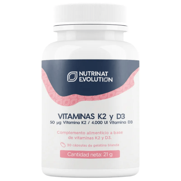https://www.atida.com/es-es/nutrinat-evolution-vitamina-k2-y-d3-30-capsulas594658169997Nutrinat Evolution Vitamina K2 Y D3 30 Cápsulas<p><span style="font-weight: bold;">Nutrinat Evolution Vitamina K2 Y D3 30 Cápsulas</span></p><p><span style="font-weight: 700;">Vitamina K2 Y D3</span> es un complemento alimenticio formulado para <span style="font-weight: bold;">proporcionar una combinación sinérgica de vitamina D3 (colecalciferol) y vitamina K2 (menaquinona).</span></p><p>Este producto ofrece u<span style="font-weight: bold;">na dosis de 4.000 UI (100 μg) de vitamina D3 natural y 50 μg de vitamina K2 </span>en su forma más biodisponible, MK-7, que se presenta en cápsulas pequeñas y fáciles de tragar.