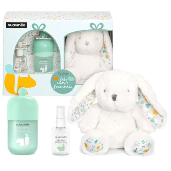 Este set incluye dos formatos de la colonia Baby Cologne Memories, de 100 ml y 50 ml,acompañados de un adorable peluche de conejo, lo que lo convierte en un presente ideal para cualquier ocasión.