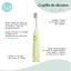 Además, las cerdas centrales de colores sirven como guía para que los niños aprendan a aplicar la cantidad correcta de dentífrico, idealmente del tamaño de un guisante.