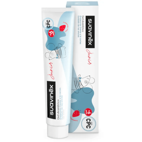 Con un <span style="font-weight: bold;">delicioso sabor a fresa</span>, este gel dentífrico ha sido testado bajo control odontológico, garantizando su seguridad y eficacia, lo que lo convierte en una opción bien aceptada por los más pequeños.</p>https://assets.atida.com/transform/fe1544ad-dd8d-4850-9f7a-582bd56fe6f1/Suavinex-Gel-Dentifrico-Junior-Fresa-6-Anos-75-ml?io=transform:extend,width:250,height:2504.99instock5.994.1239659421488171Suavinexhttps://www.atida.com/media/catalog/product/3/7/e/f/37efcd47f1ef06e8c47218c4ce1b4e673953f317_Suavinex_Gel_Dentifrico_Junior_Fresa_6_Anos_75_ml.png/Higiene Dental Infantil/Higiene Dental Infantil/Pasta de Dientes Infantil/Atida Days/Dias Sin IVA 21%/-10% EXTRA ¡Solo HOY!/Singles' Day ¡-11% Extra!/Mifarma Days INT JUNIO/-15% Extra ¡BLACK FRIDAY!/¡BLACK FRIDAY!/-20% Extra ¡CYBER MONDAY!2025-09-03T00:46:20+0000