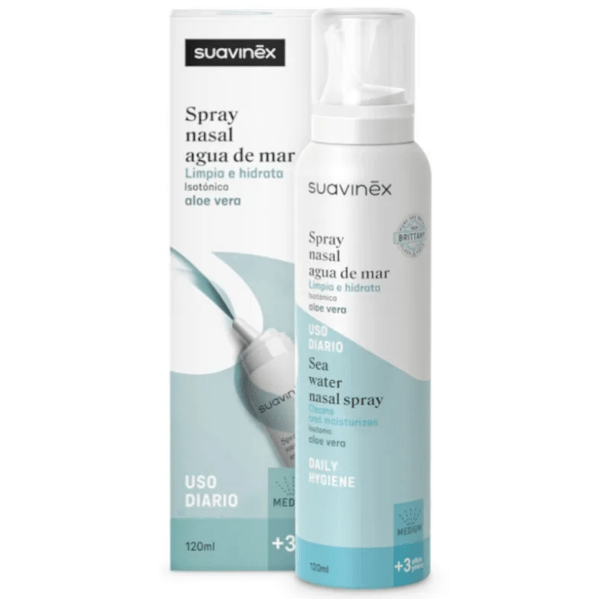 <span style="font-weight: bold;">Este spray no contiene gas propelente</span>, lo que facilita su aplicación y asegura un uso seguro.</p><p>Con su composición sencilla y efectiva, que <span style="font-weight: bold;">incluye agua purificada y un 0,9% de cloruro de sodio</span>, el Spray nasal Agua de Mar es una solución económica y eficaz para el bienestar familiar.</p>https://assets.atida.com/transform/fb32560e-95e4-41b1-8337-bf1ea51be056/Suavinex-Spray-Nasal-Isotonico-con-Aloe-Vera-3-Anos-120-ml?io=transform:extend,width:250,height:25010.99instock10.999.082643628099200Suavinexhttps://www.atida.com/media/catalog/product/8/b/5/6/8b56f300661200596fd5f14633f1ea2bcb413156_Suavinex_Spray_Nasal_Isotonico_con_Aloe_Vera_3_Anos_120_ml.png/Bebé y Mamá/Cuidado/Higiene Nasal/Bebé y Mamá/Bebé y Mamá/Cuidado/Atida Days/Dias Sin IVA 21%/-10% EXTRA ¡Solo HOY!/Singles' Day ¡-11% Extra! - 2025/Mifarma Days INT JUNIO/-15% Extra ¡BLACK FRIDAY!/¡BLACK FRIDAY!/-20% Extra ¡CYBER MONDAY!2025-09-04T00:18:30+0000