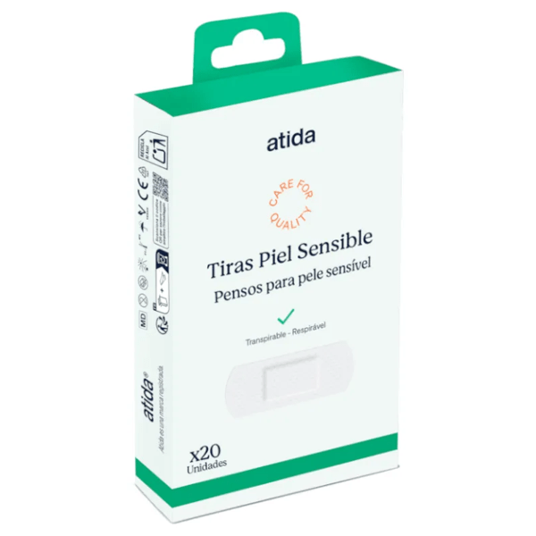 https://www.atida.com/pt-pt/atida-pensos-pele-sensivel-20-uds317444097360Atida Tiras de curativo para pele sensível 20 unidades<p>Macio, confortável e respirável. Especialmente indicado para proteger cortes e feridas em peles sensíveis ou em zonas delicadas.</p><p> Bem tolerado graças ao seu adesivo hipoalergénico. Eles não aderem à ferida.</p><p> Cor branca, 20 unidades sortidas:</p><p> - 12 unidades 19x72 mm.</p><p> - 8 unidades 25x72 mm.</p>https://assets.atida.com/transform/efccbf1e-572a-42ce-be54-59948e74d916/Atida-Tiras-Aposito-Piel-Sensible-20-uds?io=transform:extend,width:250,height:2501.99instock2.481.7610609469027200.49Atidahttps://www.atida.com/media/catalog/product/d/c/f/1/dcf1a773d85a2ab1c6eb98085f1d6597263bcf9f_Atida_Tiras_Aposito_Piel_Sensible_20_uds.png/Lesões e Primeiros Socorros/Ferimentos/Lesões e Primeiros Socorros/Black Friday Até -70%/Descontos Cyber Monday/Acumula até 20% em Atida Cash/Acumula 5% em Atida Cash/Acumula até 20% em Atida Cash/Aproveite o desconto EXTRA!/Até 50% desc. + 10% na tua carteira Atida Cash/aniversario10/Cuidado Pessoal/Atida Days NO/DIAS SIN IVA 13%/Singles' Day -11% Extra!/15% desc. em Atida2023-04-24T08:28:14+0000