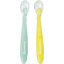 Lote de duas colheres de silicone para bebés a partir dos 3 meses, ideais para as primeiras refeições.