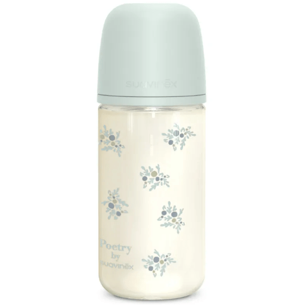 O biberão de vidro Suavinex Poetry 240 ml é uma opção excecional , pensada para bebés a partir dos 3 meses de idade .