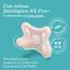Pacote econômico com 2 chupetas, o bico é feito de silicone suave para a pele e respeita a posição natural da língua. Além disso, auxilia no desenvolvimento oral adequado.