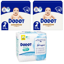 Este pack Dodot contém 2 sacos de fraldas tamanho 1, ideais para recém-nascidos, e alguns toalhetes sem plástico.