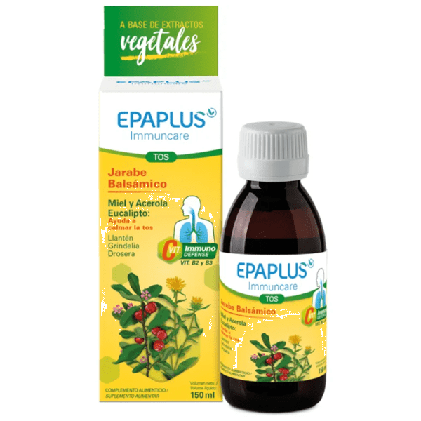 https://www.atida.com/pt-pt/epa-plus-immuncare-xarope-balsamico-adultos-epaplus-150ml954643848355Epaplus Immuncare Xarope Balsâmico Adultos 150 ml<p>Este <span style="font-weight: bold;">xarope é</span> um suplemento alimentar elaborado com matérias-primas de origem natural.<br></p><p> <strong>Com mel e acerola</strong> , fruta com alto teor de vitamina C que contribui para o normal funcionamento do sistema imunológico.</p><p> <strong>A banana</strong> tem um efeito suavizante na garganta, faringe e cordas orais.</p><p> <strong>Grindelia</strong> realiza ação balsâmica e expectorante.</p><p> Por sua vez, <strong>o sundew</strong> ajuda a manter a saúde do aparelho respiratório.</p><p> Adequado para <strong>crianças a partir dos 12 anos e adultos</strong> .</p>https://assets.atida.com/transform/8bce941f-948d-4f75-9a50-b3d6ae1bd20a/Epaplus-Immuncare-Jarabe-Balsamico-Adultos-Limon-150-ml?io=transform:extend,width:250,height:2506.99instock8.116.1858397079646141.12Epaplushttps://www.atida.com/media/catalog/product/e/7/3/6/e7360969fed7a406c55bdc4cb891b1c83713f6f5_Epaplus_Immuncare_Jarabe_Balsamico_Adultos_Limon_150_ml.png/Vitaminas e Suplementos/Multi-Vitaminas/Black Friday Até -70%/Descontos Cyber Monday/Aproveite o desconto EXTRA!/Acumular até 5% em Atida Cash/Vitaminas e Suplementos/DIAS SIN IVA 13%/Atida Days NO/Até -75%! EPIC DAYS!/Singles' Day -11% Extra!2023-04-24T08:56:14+0000