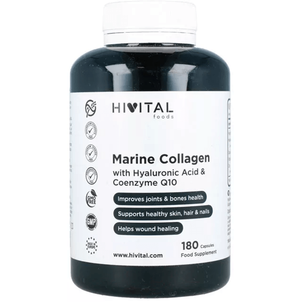 https://www.atida.com/pt-pt/hivital-colagenio-marinho-acido-hialuronico-180-capsulas987976756592Hivital Colágeno Marinho + Ácido Hialurônico 180 Cápsulas<p><strong>Hivital Colágeno Marinho + Ácido Hialurônico 180 Cápsulas</strong></p><p> Suplemento alimentar à base de peptídeos de Colágeno Marinho Tipo 1, Ácido Hialurônico, Coenzima Q10, Vitamina C e Zinco.</p><p> Contém:</p><p> - 900 mg de peptídeos de colágeno marinho hidrolisado tipo 1</p><p> - 45 mg de ácido hialurônico puro</p><p> - 30 mg de Coenzima Q10</p><p> - 80 mg de vitamina C (100% RDA)</p><p> - 10 mg de Zinco (100% RDA).</p><ul><li> RDA (Dose Diária Recomendada).</li></ul><p> Ajuda a reduzir a dor nas articulações e também melhora a densidade óssea.</p><p> É também um nutricosmético indicado para o bom estado da pele, cabelos e unhas.</p><p> Além disso, promove a regeneração muscular.</p><p> Sem glúten, sem lactose, sem soja, sem estearato de magnésio. Não transgênico (livre de OGM).</p><p> O frasco de 180 cápsulas contém tratamento durante 3 meses.</p>https://assets.atida.com/transform/9ee4ff2b-76c0-4f6b-84bc-89becb1658d8/Hivital-Colageno-Marino-Acido-Hialuronico-180-Capsulas?io=transform:extend,width:250,height:25020.99instock23.3218.575220238938102.33Hivitalhttps://www.atida.com/media/catalog/product/5/4/d/6/54d60f8cfc9df8699a73272ce9fba13d80954306_Product_Tile_Thumbnail_Hivital_Colageno_Marino_Acido_Hialuronico_180_Capsulas.png/minipreços/Cuidado Pessoal/Cuidado Pessoal/Cuidado Capilar/Vitaminas e Suplementos/DIAS SIN IVA 13%/exclusionescuponesatpt22023-04-24T08:57:32+0000