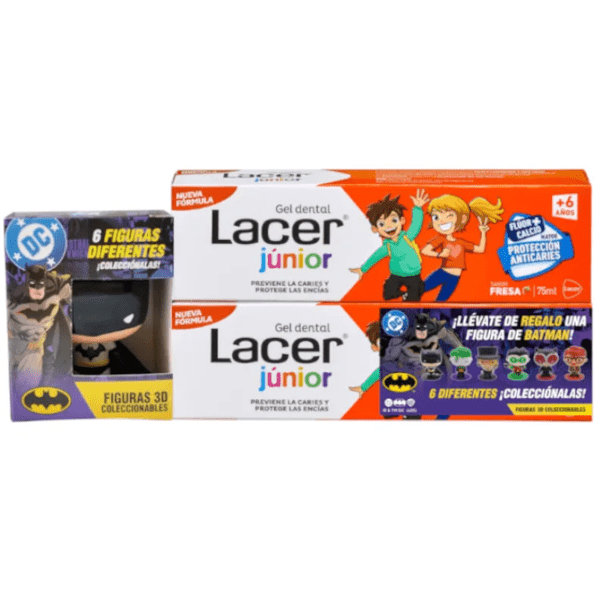 https://www.atida.com/pt-pt/lacer-junior-gel-de-morango-duplo-75-ml-brinquedo-sonic299369394404Gel Lacer Junior Morango +6 Anos 2x75 ml + Figura Batman<p><span style="font-weight: 700;">Gel Lacer Junior Morango +6 Anos 2x75 ml + Figura Batman</span></p><p> <span style="font-weight: bold;">Gel dentário com sabor a morango para crianças com mais de 6 anos</span> . <span style="font-weight: bold;">Contém flúor</span> <span style="font-weight: bold;">e cálcio</span> para proteger o esmalte dos dentes e prevenir o desgaste, além de proporcionar uma higiene oral completa.</p><p> O dentífrico Lacer Junior é fácil de usar para as crianças e ensina-lhes bons hábitos de higiene oral desde cedo.</p><p> A figura incluída no conjunto torna a escovagem mais divertida para as crianças, incentivando ainda mais o uso diário.</p><p> Isento de conservantes e glúten, este produto é uma excelente opção para cuidar da saúde oral dos mais pequenos.</p><p> <span style="font-weight: bold;">A figura será enviada aleatoriamente.</span></p>https://assets.atida.com/transform/cb846181-8aea-4640-9180-4d11ee7dba73/Lacer-Junior-Fresa-Gel-6-Anos-2x75-ml-Figura-de-Batman?io=transform:extend,width:250,height:2507.99outofstock9.36.4959339593496141.31Lacerhttps://www.atida.com/media/catalog/product/5/5/c/e/55ce9db0003b07b535e942a43d00dc6dbee02171_Lacer_Junior_Fresa_Gel_6_Anos_2x75_ml_Figura_de_Batman.png/Presentes/Presentes/Presentes para toda a família/Aproveite o desconto EXTRA!/DIAS SIN IVA 23%/Cuidados Dentários para Crianças/Cuidados Dentários para Crianças/Pasta de Dentes Infantil2023-05-22T23:53:21+0000