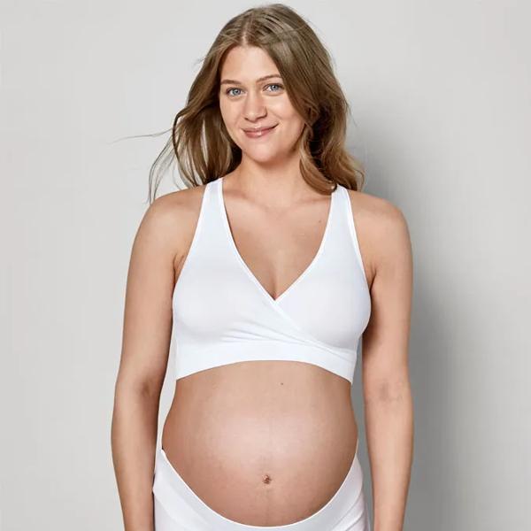 Com design cruzado que facilita a amamentação.
