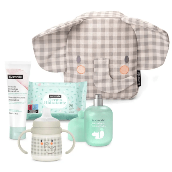 Mochila de berçário elefante Suavinex para bebé cinzento 4 produtos