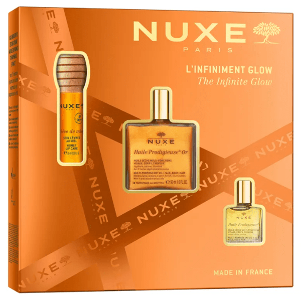 https://www.atida.com/pt-pt/nuxe-huile-prodigieuse-or-50-ml-roll-on-10-ml-balsamo-labial-miel370787788806Nuxe Huile Prodigieuse Ou 50 ml + Roll-on 10 ml + Bálsamo Labial Mel<p><span style="font-weight: bold;">Nuxe Huile Prodigieuse Ou 50 ml + Roll-on 10 ml + Bálsamo Labial Mel</span></p><p> Óleo seco para rosto, corpo e cabelos, que nutre, suaviza e ilumina a pele e os cabelos.</p><p> Com 98% de ingredientes de origem natural, este óleo seco com efeito luminosidade é uma associação inédita de 30% de Óleos Vegetais Preciosos e Vitamina E, para nutrir, reparar e suavizar o rosto, corpo e cabelos num só gesto.</p><p> Indicado para uso durante todo o ano no <span style="font-weight: bold;">rosto, corpo e cabelos</span> .</p><p> A pele do rosto e do corpo fica suavizada e acetinada. O cabelo parece flexível, macio e brilhante. Sensuais, suas madrepérolas douradas iluminam a pele com sutis reflexos dourados, que se destacam ao menor movimento.</p><p> Graças à sua concentração inédita de 7 Preciosos Óleos 100% vegetais (Óleo de Tsubaki, Argão, Macadâmia, Borragem, Camélia, Avelã e Óleo de Amêndoa doce), este cuidado completo é absorvido muito rapidamente e deixa a pele num só gesto macia e acetinada. e cabelos flexíveis e brilhantes.</p><p> Híbrido entre tratamento e maquiagem, este iluminador expresso oferece um brilho iridescente irresistível sem acabamento oleoso graças à sua textura com toque seco inimitável, enriquecida com madrepérolas douradas.</p><p> Sem conservantes.</p><p> O pack inclui o mesmo óleo em formato roll-on e o protetor labial nutritivo e reparador Rêve de Miel.</p>https://assets.atida.com/transform/0dd11405-fc04-4e7c-be21-25d2125e79b8/Nuxe-Huile-Prodigieuse-Or-50-ml-Roll-on-10-ml-Balsamo-Labial-Miel?io=transform:extend,width:250,height:25027.99instock32.4922.756096560976144.5Nuxehttps://www.atida.com/media/catalog/product/7/e/a/7/7ea76d3d04ce0811be7932e948ca61b9d7d319c5_Nuxe_Huile_Prodigieuse_Or_50_ml_Roll_on_10_ml_Balsamo_Labial_Miel.png/Beleza/Beleza/Corpo/Beleza/Rosto/Beleza/Corpo/Óleos/Beleza/Rosto/Óleos/Presentes/Coffrets para ela/Presentes/Presentes/Para ela/Black Friday Até -70%/Descontos Cyber Monday/Acumular até 5% em Atida Cash/Aproveite o desconto EXTRA!/DIAS SIN IVA 23%/Singles' Day -11% Extra!2024-07-23T23:41:30+0000