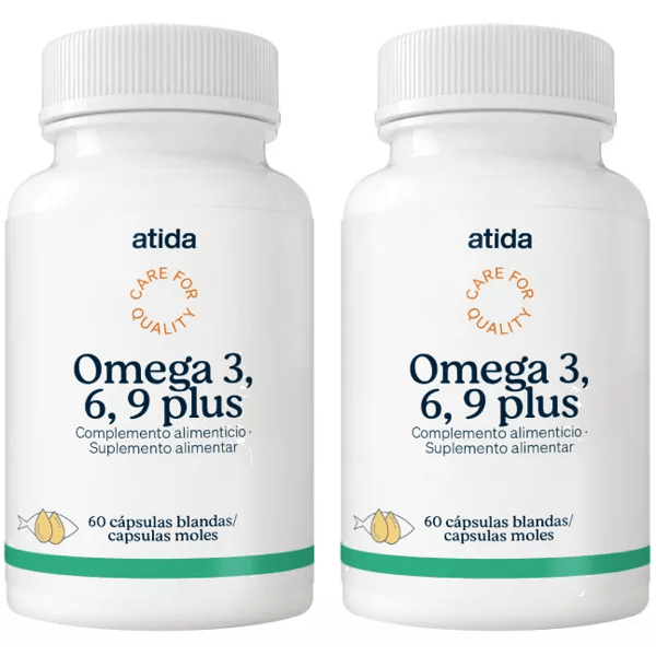 https://www.atida.com/pt-pt/omega-3-6-9-1386mg-binature-200-perolas193116938942Atida Omega 3,6,9 Plus 2x60 Cápsulas Moles<p>Suplemento alimentar formulado com <span style="font-weight: bold;">óleo de prímula, óleo de peixe, óleo de linhaça e vitamina E.</span></p><p> É fonte de <span style="font-weight: bold;">Ômega 9 e ácidos graxos essenciais Ômega 3 e Ômega 6,</span> conhecidos por suas <span style="font-weight: bold;">propriedades cardiovasculares.</span></p><p> Ajuda <span style="font-weight: bold;">a regular os níveis de colesterol no sangue, reduzindo o colesterol ruim (LDL) e aumentando o colesterol bom (HDL)</span> .</p><p> Além disso, <span style="font-weight: bold;">são atribuídas propriedades antiinflamatórias,</span> por isso sua ingestão é recomendada para pessoas com <span style="font-weight: bold;">enxaquecas, artrite e reumatismo,</span> entre outras enfermidades.</p><p> Promove o bom funcionamento do coração e previne doenças cardiovasculares.</p><p> Além disso, <span style="font-weight: bold;">recomenda-se o consumo de Ômega 3-6-9 durante a gravidez. Contribui para o correto desenvolvimento do feto.</span></p><p> <span style="font-weight: bold;">DUPLO!</span></p>https://assets.atida.com/transform/ff21753d-a69b-4856-8745-1323370b6b7b/Atida-Omega-3-6-9-Plus-2x60-Capsulas-Blandas?io=transform:extend,width:250,height:2508.56instock11.467.5752202389381252.9Atidahttps://www.atida.com/media/catalog/product/7/7/f/a/77fa74add93272c3b66096a6135447b222392be6_Product_Tile_Thumbnail_Atida_Omega_3_6_9_Plus_2x60_Capsulas_Blandas.png/Vitaminas e Suplementos/Suplementos/Cardiovascular/Vitaminas e Suplementos/Vitaminas e Suplementos/Suplementos/minipreços/Packs Poupança/Packs Poupança/Packs Vitaminas e Suplementos/Black Friday Até -70%/Descontos Cyber Monday/Acumula até 20% em Atida Cash/Acumula 5% em Atida Cash/Acumula até 20% em Atida Cash/Aproveite o desconto EXTRA!/Até 50% desc. + 10% na tua carteira Atida Cash/aniversario10/DIAS SIN IVA 13%/Atida Days NO/Singles' Day -11% Extra!/15% desc. em Atida/exclusionescuponesatidapt2023-08-17T05:57:49+0000
