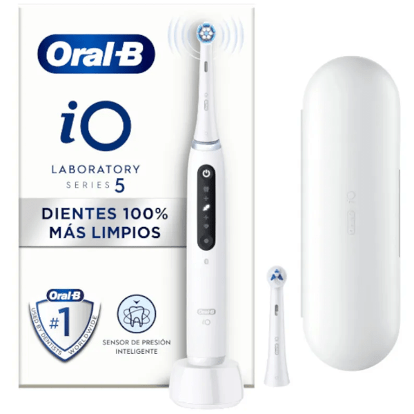 A Oral-B iO5 combina tecnologia avançada com um design prático para proporcionar uma limpeza profunda e um cuidado suave para os seus dentes e gengivas. A sua cabeça de escova redonda com microvibrações remove eficazmente a placa bacteriana, enquanto o sensor de pressão inteligente protege as suas gengivas, alertando-o caso escove com demasiada força.
